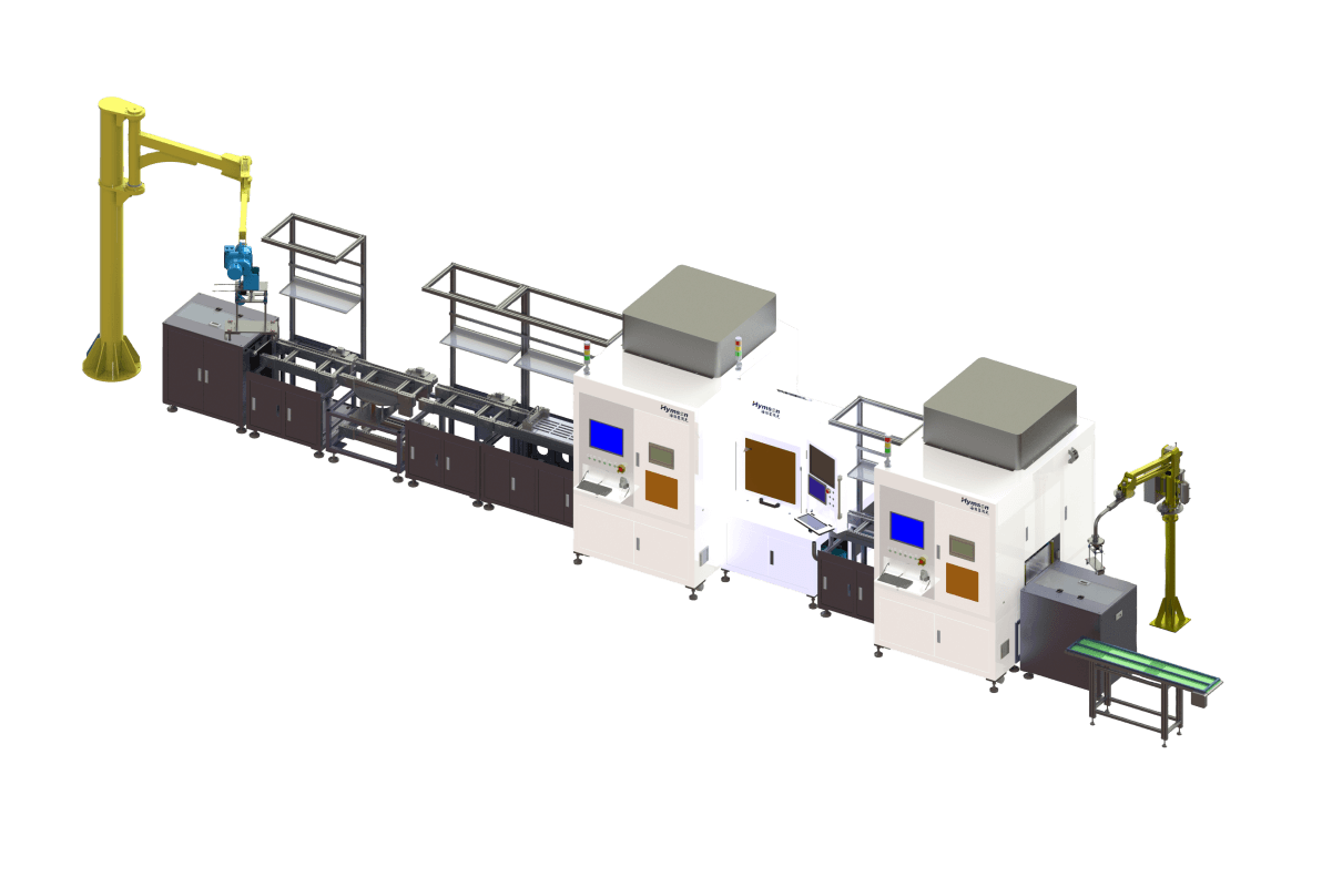 該產(chǎn)線用于鋁殼大圓柱電池到儲(chǔ)能模組的自動(dòng)化裝配、清洗、焊接、檢測(cè)工序